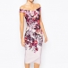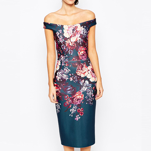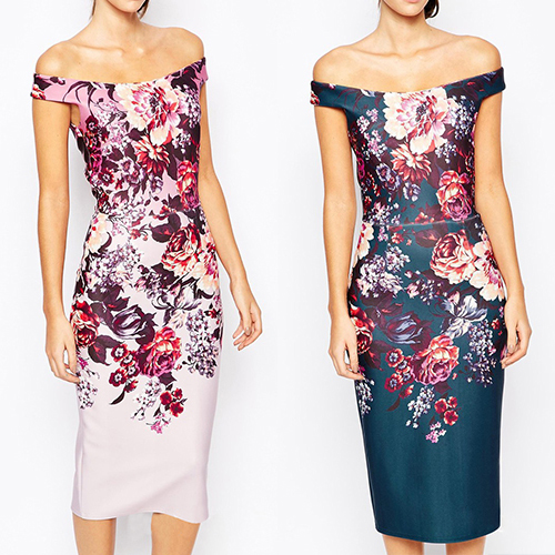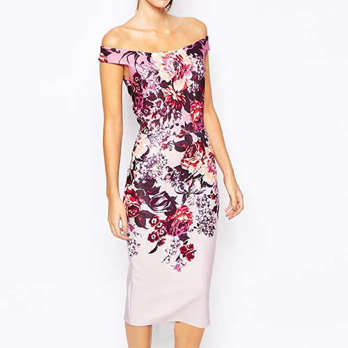 silhouette and off-shoulder design expresses a sultry side while the vibrant floral print maintains your elegance. So why not add this delicate dress to your wardrobe?