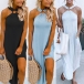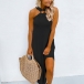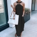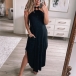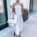 Sexy Off-shoulder Slit Hem Solid Color Halter Dress
