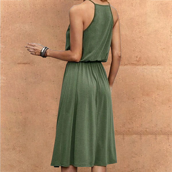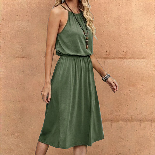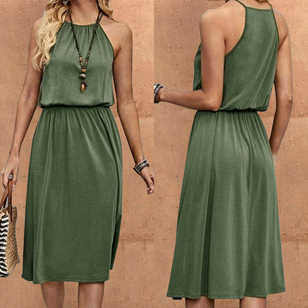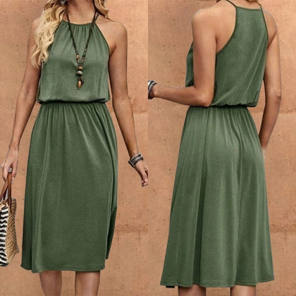 Sexy Off-shoulder Solid Color Elastic Waist Sling Summer Dress