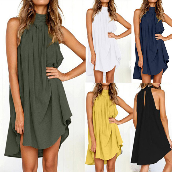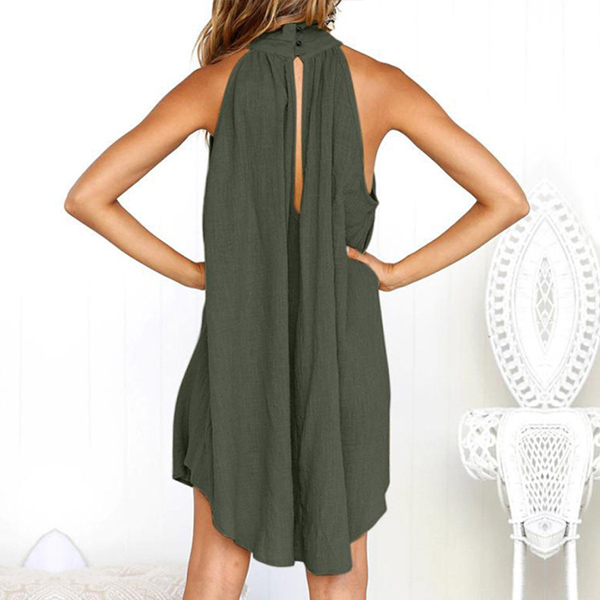 Greet the arrival of the summer season with a relaxed dress such as this piece. Solid color style,the off-shoulder and halter design can lend you a dash of sexy and flirty vibes,while its soft,breezy fabric can ensure a cool and comfortable day. So why not take interest in it?