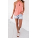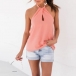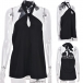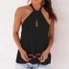 For the sun-soaked summer days,this wonderful top can easily strike your mind. The off-shoulder and halter design are the highlights,which make this piece full of sexy and flirty vibes. Comes with a solid color,this piece also can give you a cool and comfortable day with its soft,breathable fabric. We suggest you matching with a shorts to achieve for a fashionable summer look.