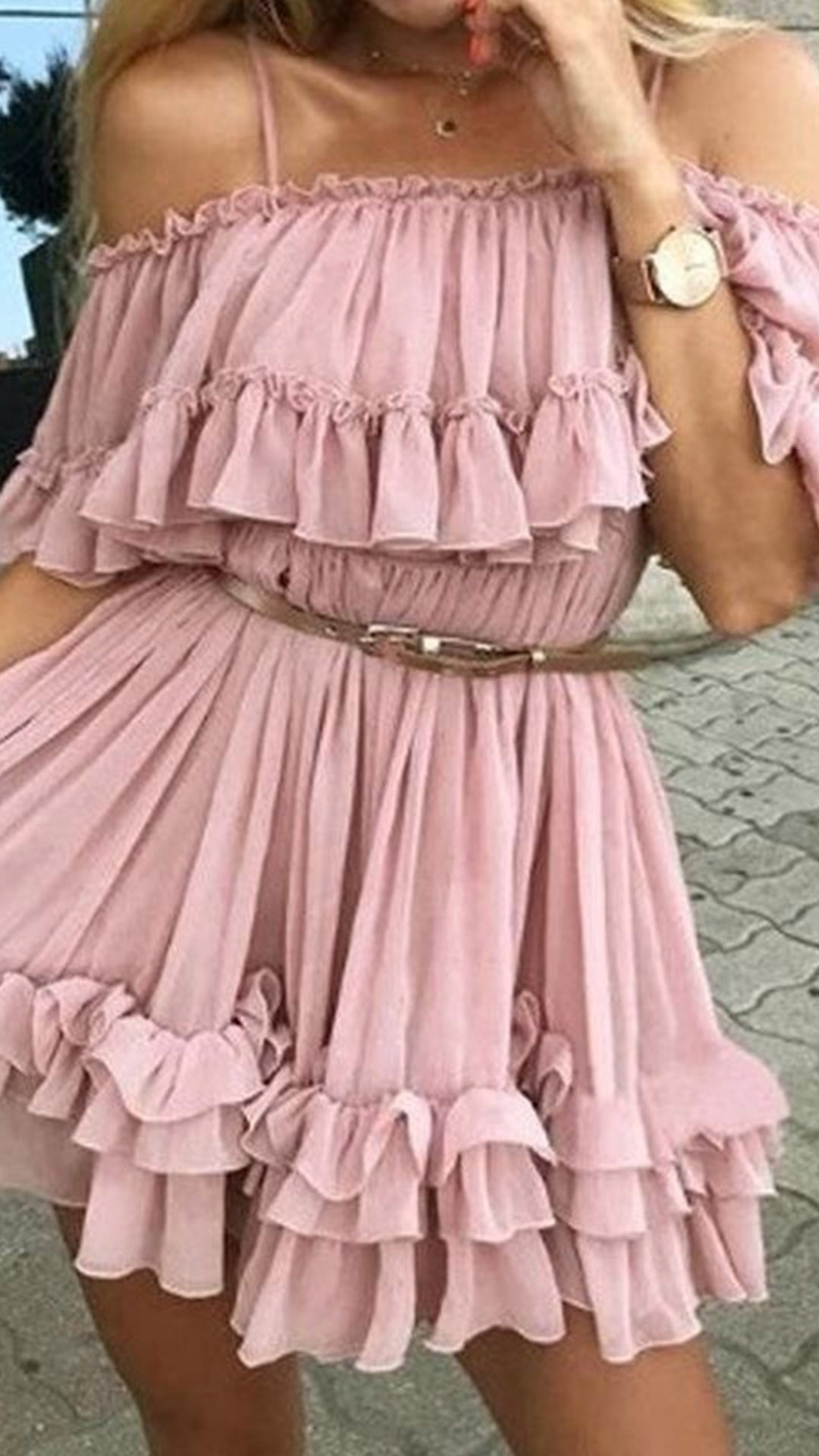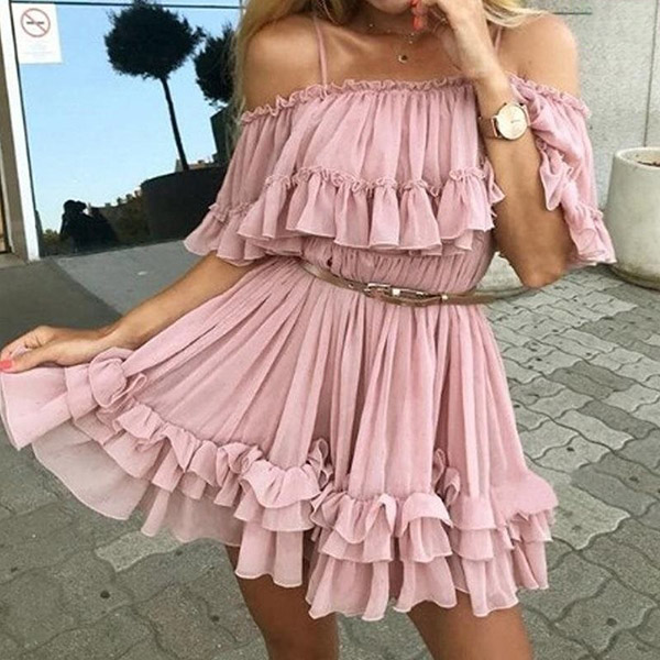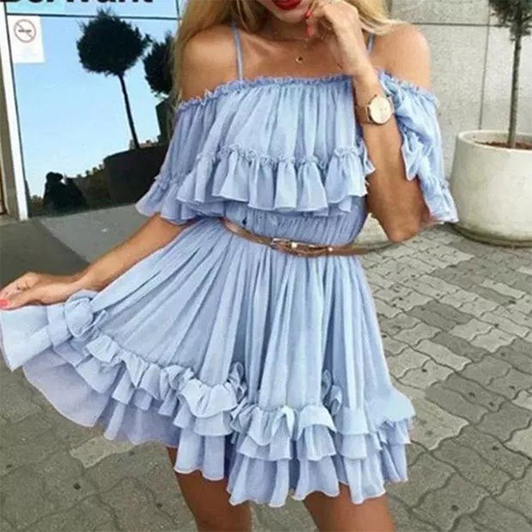 If you wanna a sexy and charming summer look,then you can just have a look at this dress. Sling and off-shoulder design can make you look more alluring. And the ruffle design will lend you a dash of sweet and flirty vibes. When having a dating with your boyfriend,you can just slip into this dress to win his eyes.