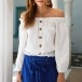 At your first sight,you would be attracted by this sexy and chic top. Solid color style,the lantern sleeve,boat neck and stringy selvedge design make this piece full of flirty,sweet yet feminine appeal. When matching with your tight pants and choker necklace,you can look more beautiful and charming!