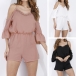accompanied with off-shoulder,trumpet sleeve,elastic waist and lace spliced details,sexy and charming.