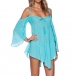 Sexy Off-shoulder Trumpet Sleeve Irregular Hem Solid Color Cami Dress