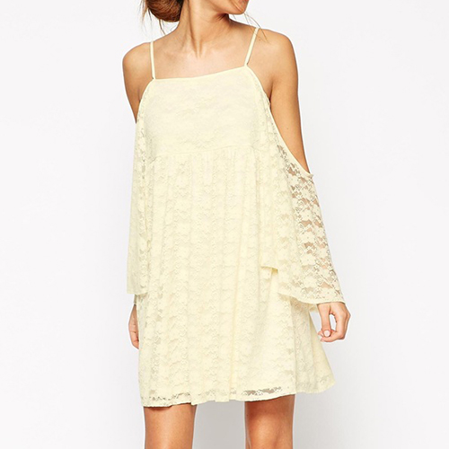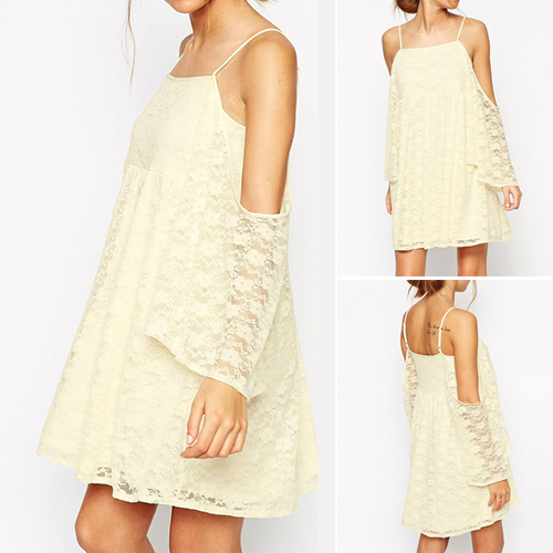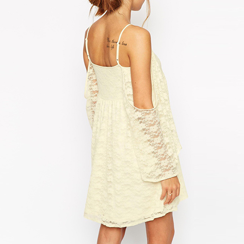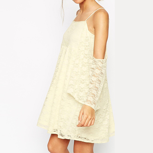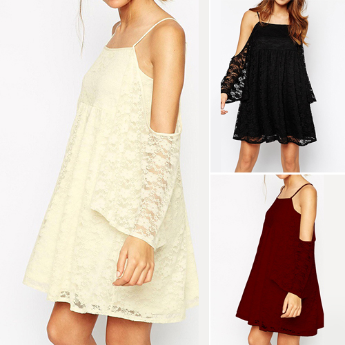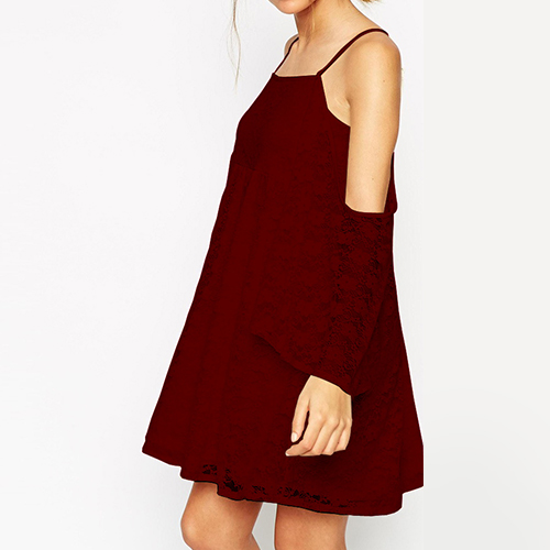 Showcase your charming feminine side through this lace dress. Sling style,designed with