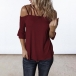 Combines of stylish and sexy vibes,this top is worth to arouse your attention. It comes with a solid color,the trumpet sleeve,off-shoulder and sling design make this piece look so attractive. You can simply matching with a tight pants to finish a charming style.