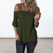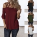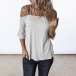 Sexy Off-shoulder Trumpet Sleeve Solid Color Sling Top