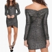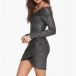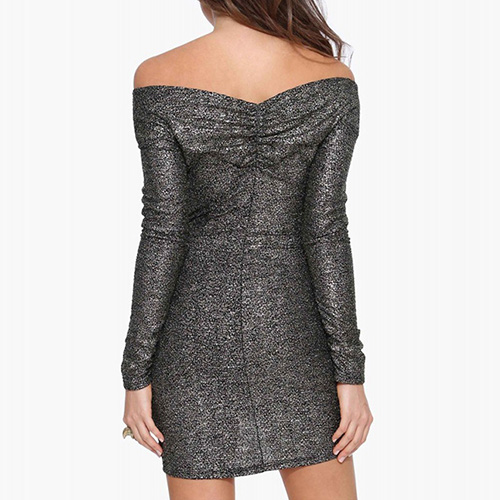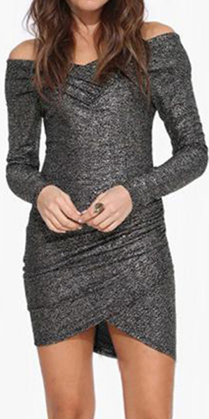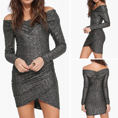 This long sleeve sheath dress surely fits the needs with its off-shoulder v-neckline and irregular hem. Simply