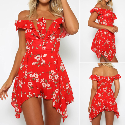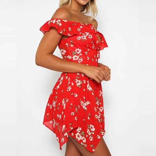 This dress knows how to make you look alluring and feminine. Boasts a vibrant floral print,styled with off-shoulder,v-neck