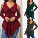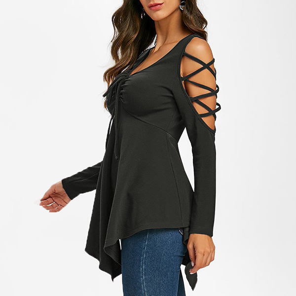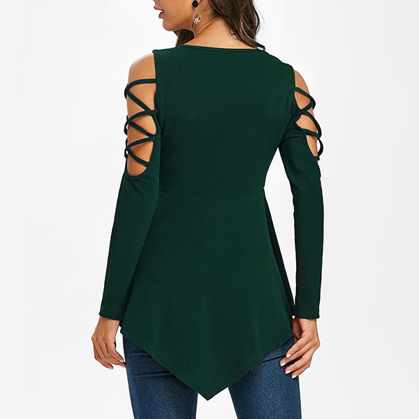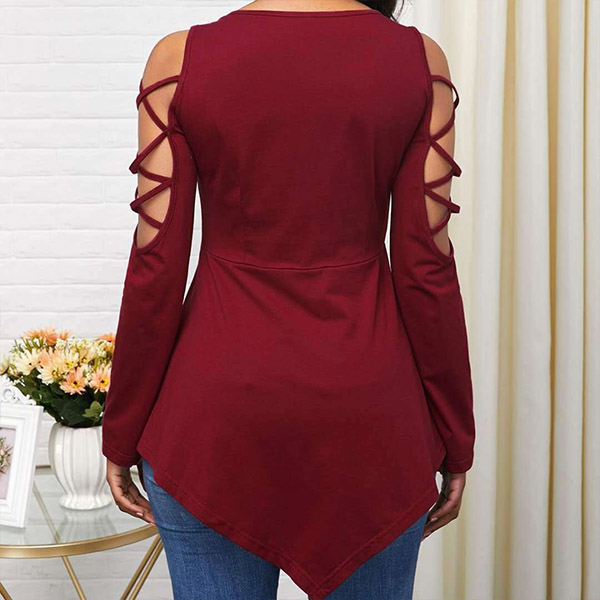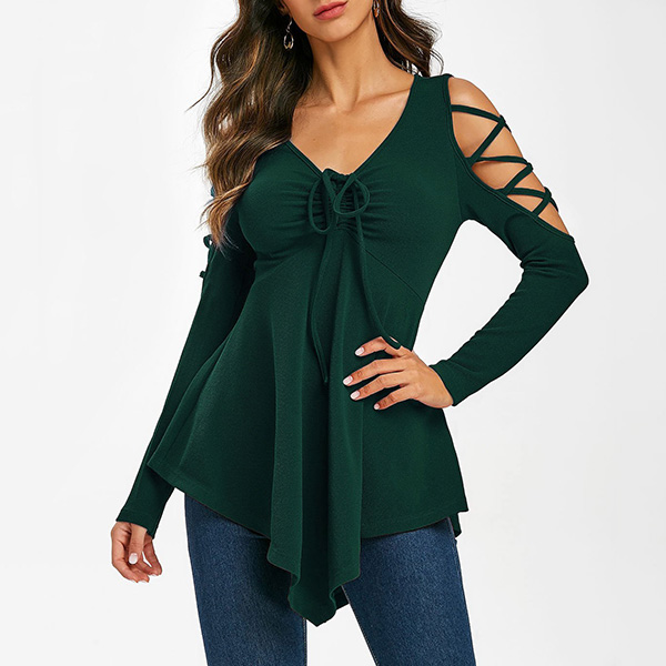 Sexy Off-shoulder V-neck Long Sleeve Irregular Hem T-shirt