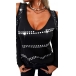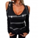 Sexy Off-shoulder V-neck Long Sleeve Rhinestone T-shirt
