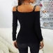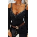Sexy Off-shoulder V-neck Long Sleeve Slim Fit Rhinestone T-shirt