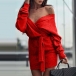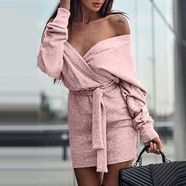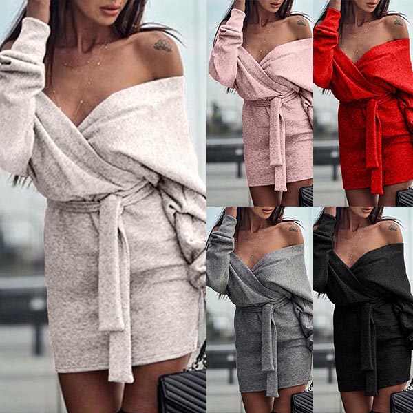 If you're yearning for a piece which can boost your style,then look no further than this dress! Solid color tone design makes it look simple yet generous,while the off-shoulder v-neck design can exudes your sexy and feminine appeal. For a sexy and charming night look,you can trust in this dress.