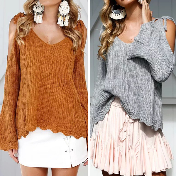 v-neck and off-shoulder design,sexy and feminine. Comfortable to wear and easy to match,this sweater is your