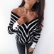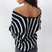 Sexy Off-shoulder V-neck Long Sleeve Striped Top