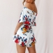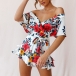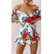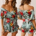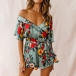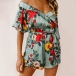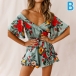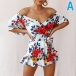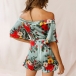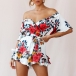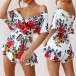 Sexy Off-shoulder V-neck Short Sleeve High Waist Ruffle Hem Printed Romper