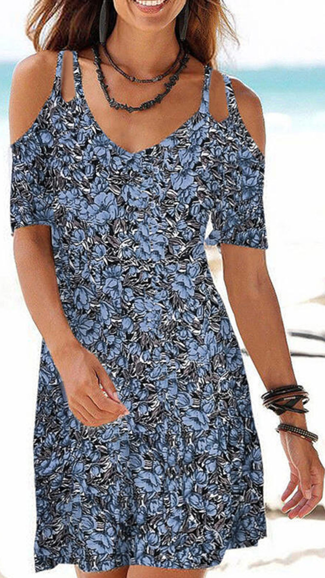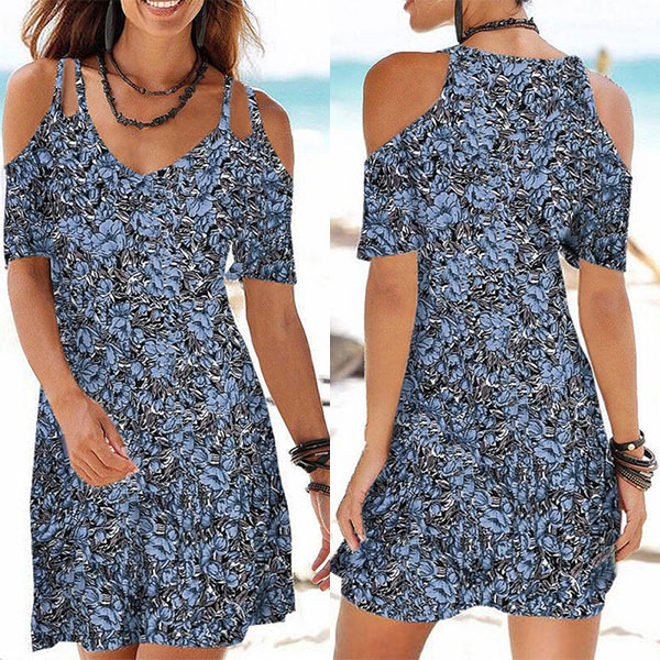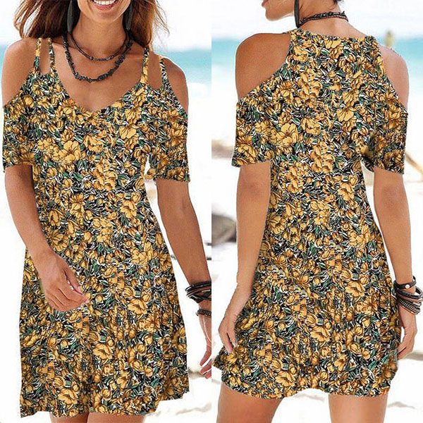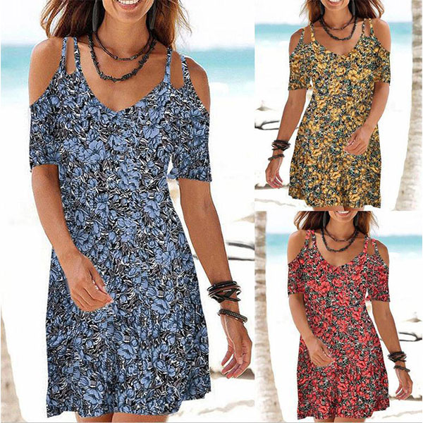 The floral print dress makes it easy for any girl to look effortlessly charming and beautiful. Sling style,with off-shoulder and v-neck design,this dress can exude your sexy and flirty vibes. For your beach days,tropical getaways or weekend trips,this dress can be your wise choice. Add this dress to your summer wardrobe ensemble and it won't let you disappointed!