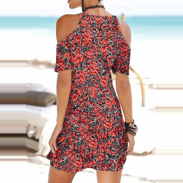 Sexy Off-shoulder V-neck Shortr Sleeve Printed Sling Dress