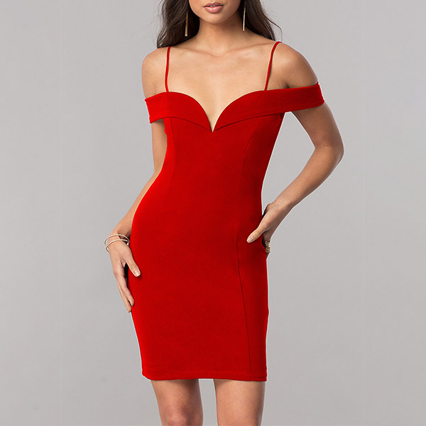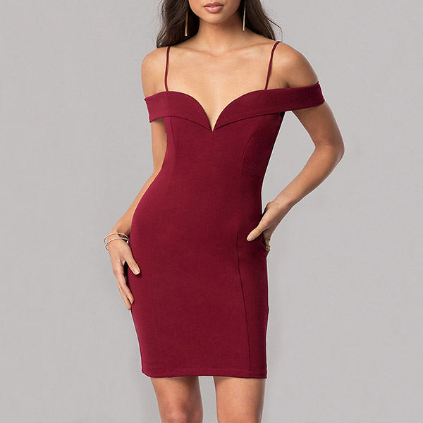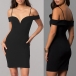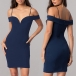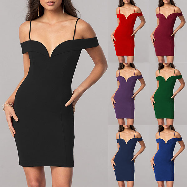 Sexy Off-shoulder V-neck Solid Color Slim Fit Sling Dress