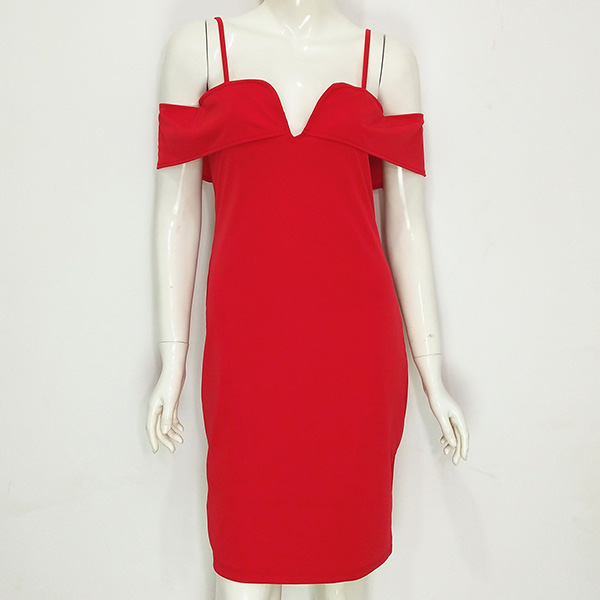 Sexy Off-shoulder V-neck Solid Color Slim Fit Sling Dress