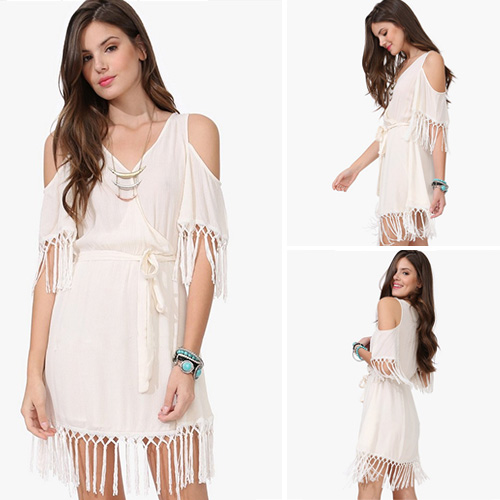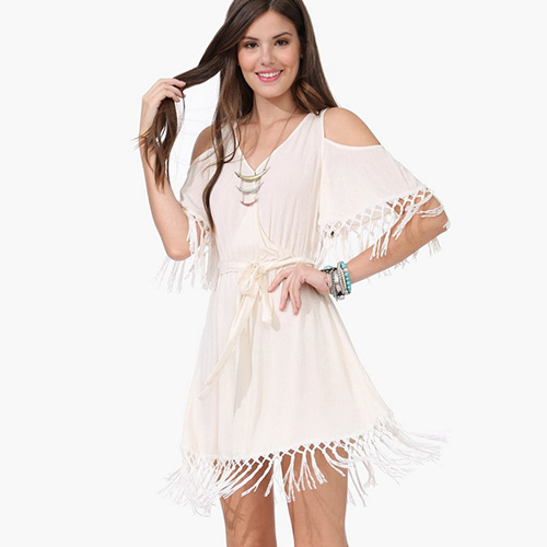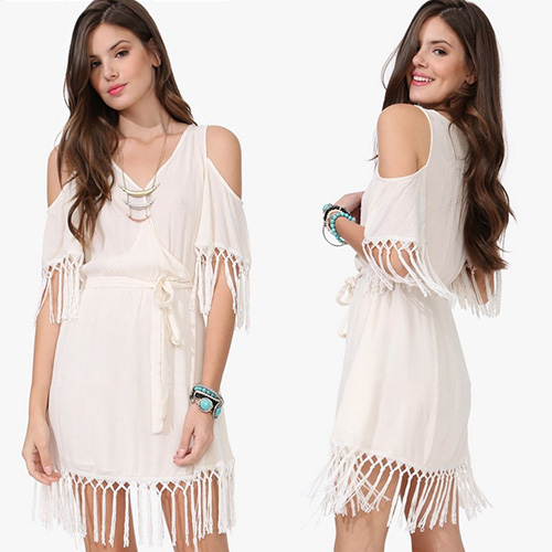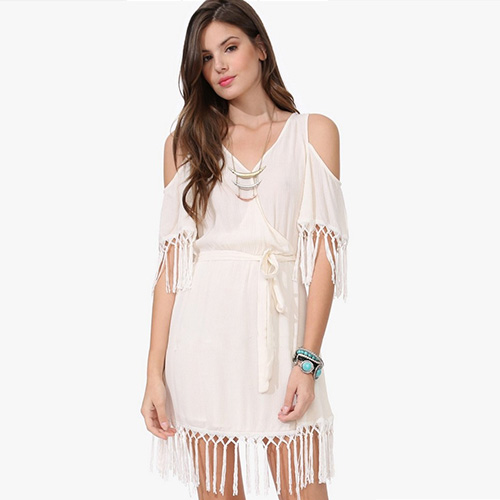 v-neck design adding some sexy and seductive elements. And its tassels design makes it more