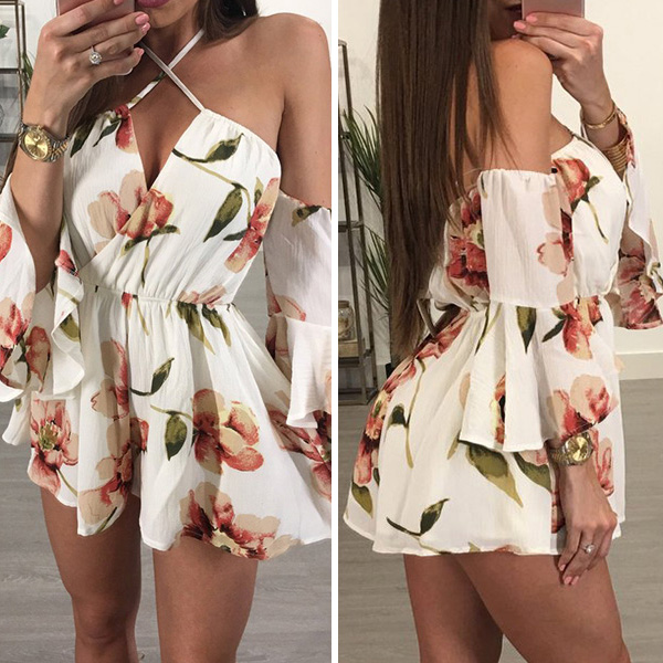 Give your sexy and charming summer style a perfect definition through this romper. Boasts vibrant floral print,styled with