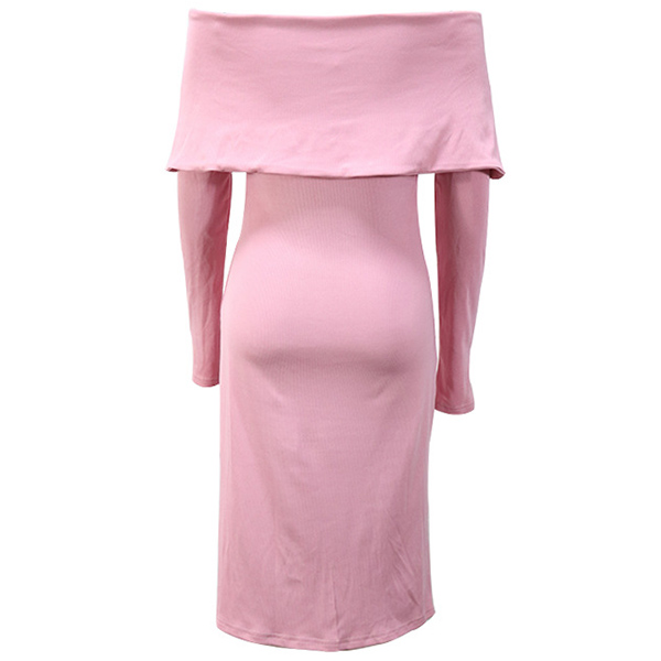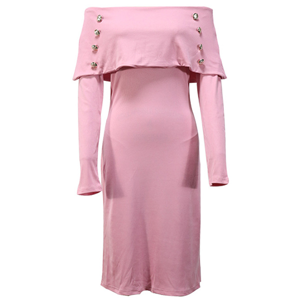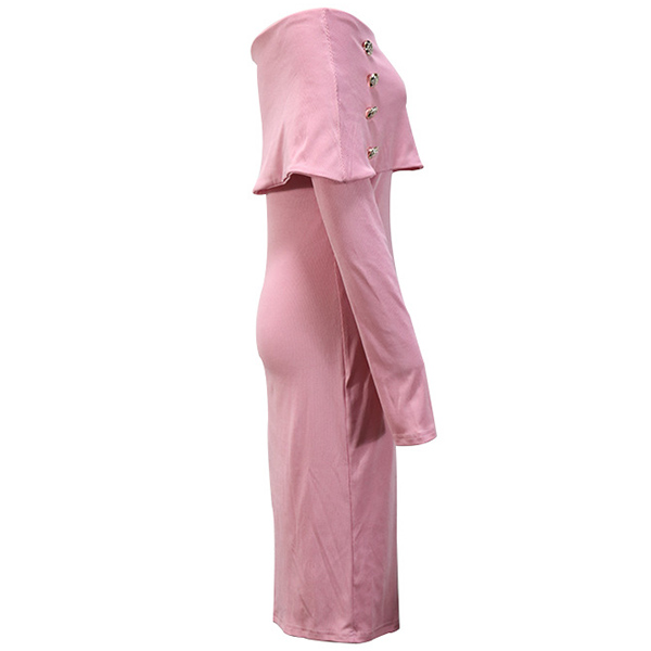 Sexy Off-the-shoulder Double Breasted Long Sleeve Ribbed Bodycon Dress