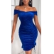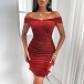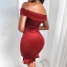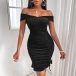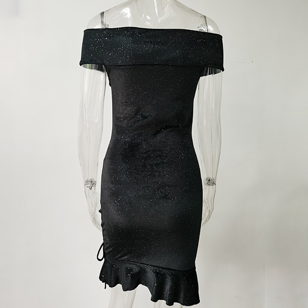 Sexy Off-the-shoulder Drawstring Ruffle Hemline Bodycon Dress