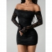 Sexy Off-the-shoulder Long Sleeve Bodycon Lace Dress