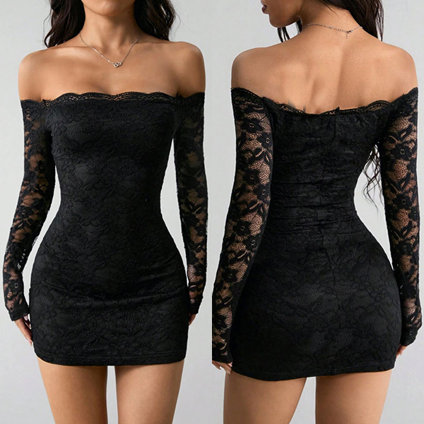 How about this black lace dress? The combination of figure-hugging silhouette, romantic lace, and graceful off-shoulder design ensures this dress becomes your go-to piece for occasions that call for effortless glamour and memorable style. Wanna have a try?