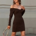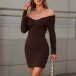 Sexy Off-the-shoulder Long Sleeve Bodycon Ribbed Dress