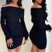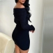 Sexy Off-the-shoulder Long Sleeve Ribbed Bodycon Dress