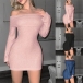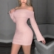 Sexy Off-the-shoulder Long Sleeve Ribbed Bodycon Dress