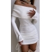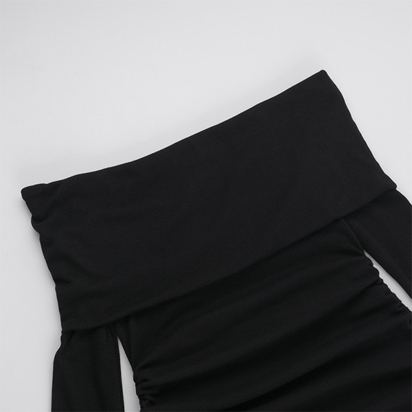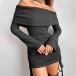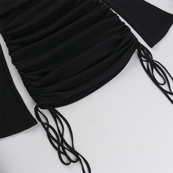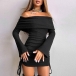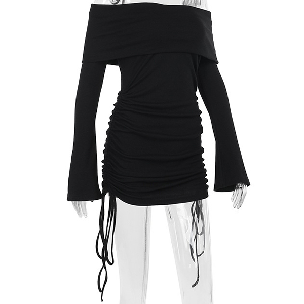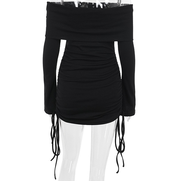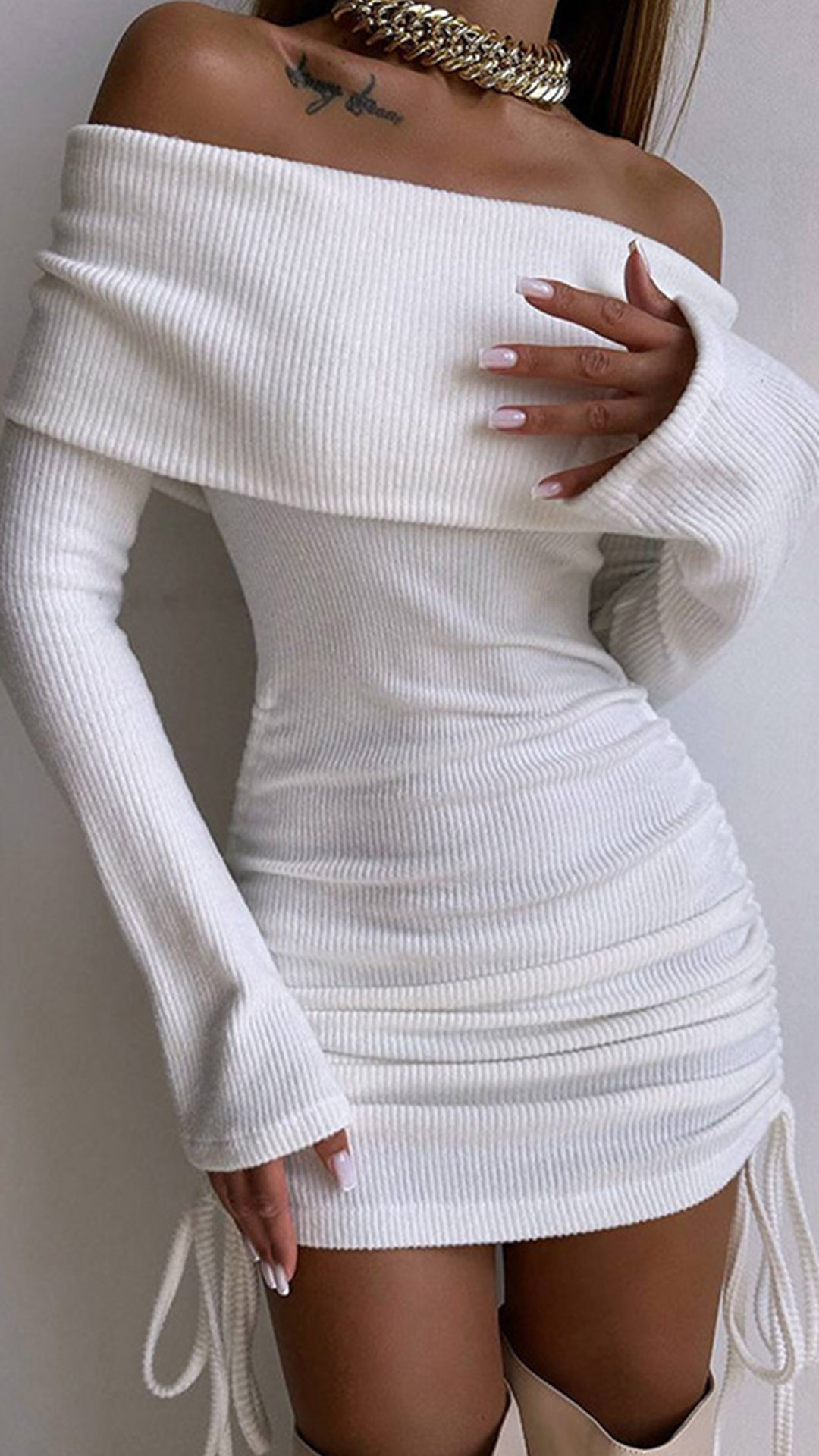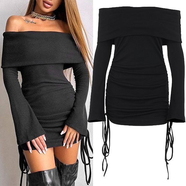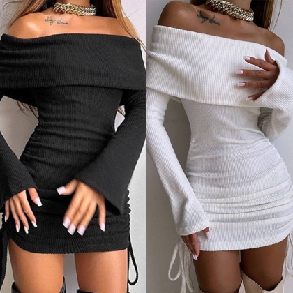 Sexy Off-the-shoulder Long Sleeve Side Drawstring Ribbed Bodycon Dress