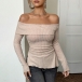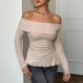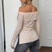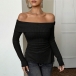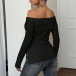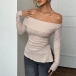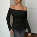 Sexy Off-the-shoulder Long Sleeve Side Slit Ribbed Shirt