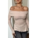 This stylish shirt features an alluring off-the-shoulder neckline that highlights your shoulders and collarbones. While the side slits create a modern and edgy look. The ribbed fabric adds texture and dimension to the shirt, making it a versatile and trendy piece for your wardrobe. Paired with jeans or a skirt for a chic and stylish ensemble.