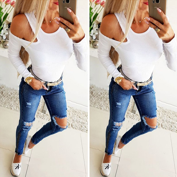 If you are not satisfied with those bottoming tops which are too simple and conservative, you can try this piece. It comes with solid color and long sleeve, decorated with the unilateral off-the-shoulder design, which can showcase your charming in low-profile. Perfect fit for matching with different style bottoms.