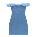 Look at this denim dress! The off-the-shoulder neckline with the plush details, adds a luxurious and trendy element. Wanna have a try?