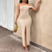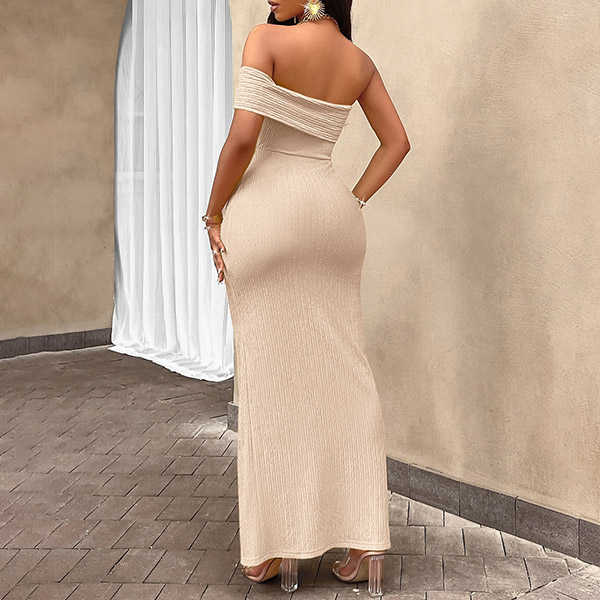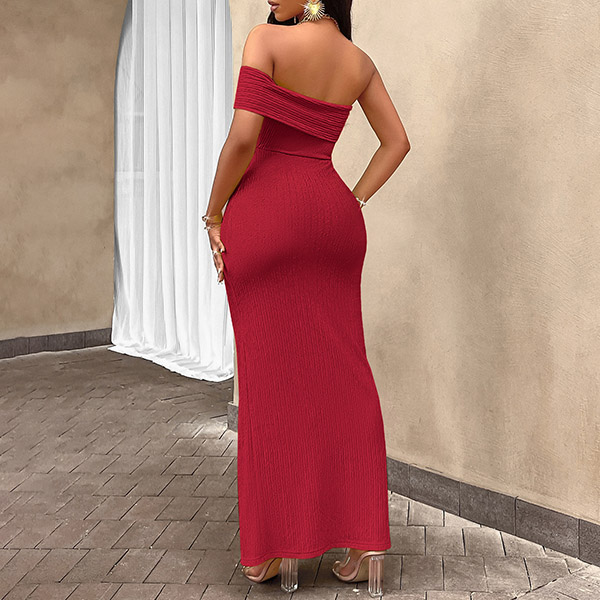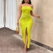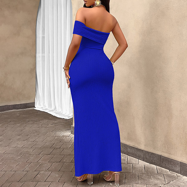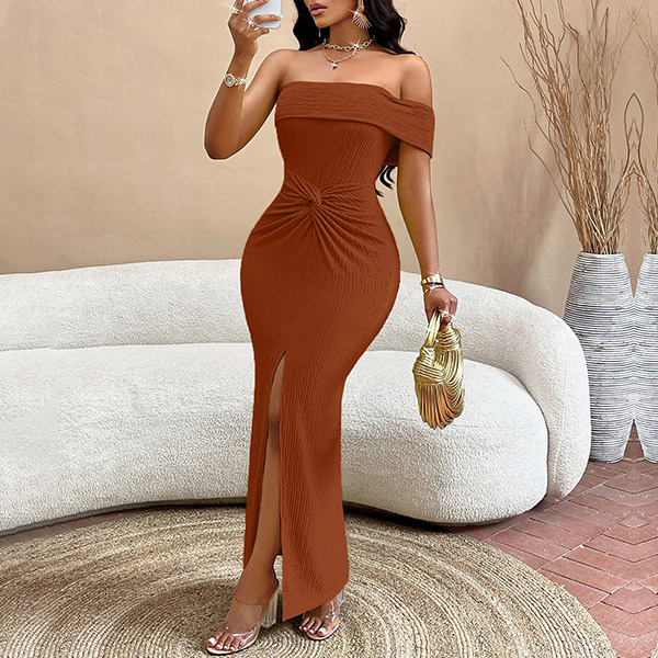 Sexy Off-the-shoulder Ruched Front Slit Bodycon Maxi Dress