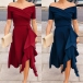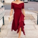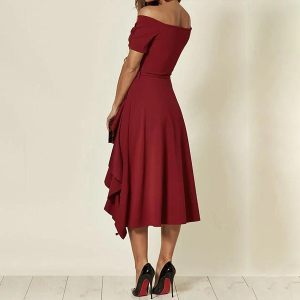 Sexy Off-the-shoulder Short Sleeve Irregular Hemline Ruffle Party Dress
