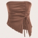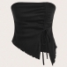 Sexy Off-the-shoulder Side Drawstring Slit Irregular Hemline Texture Crop Shirt
