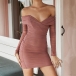 This is a gorgeous, figure-hugging dress that is sure to turn heads! It features an off-the-shoulder sweetheart neckline, semi-through long sleeves, and a ruched bodycon silhouette. Wanna have a try?
