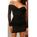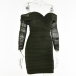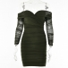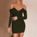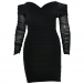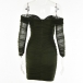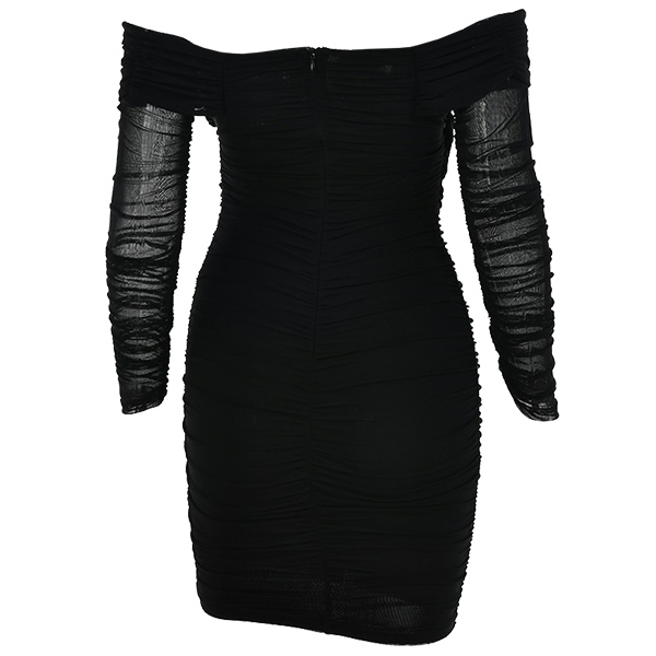 Sexy Off-the-shoulder Sweetheart Gauze Spliced Long Sleeve Ruched Bodycon Dress