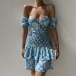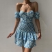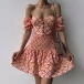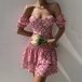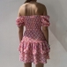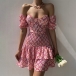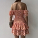 Sexy Off-the-shoulder Sweetheart Short Sleeve Smocked Printed Tiered Dress