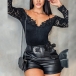 This bodysuit features a deep V-neckline and long off-the-shoulder sleeves, which create an alluring and sexy silhouette. The lace detailing adds a touch of elegance and sophistication to the bodysuit, the perfect team with a skirt or shorts.