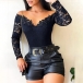 Sexy Off-the-shoulder V-neck Long Sleeve Lace Bodysuit