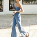 Sexy Old-washed Strapless Wide-leg Denim Jumpsuit
