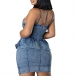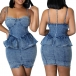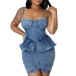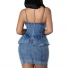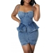 Sexy Old-washed Sweetheart Ruffled Bodycon Denim Dress