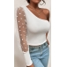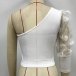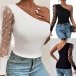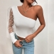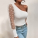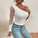 Sexy One-shoulder Gauze Spliced Long Sleeve Crop Top